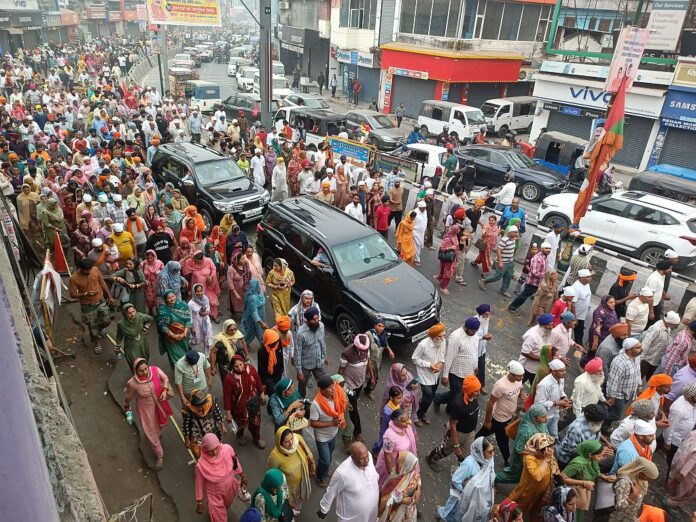 देहरादून। झण्डा दरबार साहिब से महंत देवेन्द्र दास के सानिध्य में नगर परिक्रमा निकाली गयी। नगर परिक्रमा झण्डा दरबार साहिब से प्रारम्भ होकर सहारनपुर चौक, कांवली रोड से होते हुए एसजीआरआर बिन्दाल पहुंची इस दौरान पुलिस प्रशासन ने नगर परिक्रमा के सहारनपुर चौक पहुंचने पर कांवली रोड से सहारनपुर चौक की तरफ कोई यातायात नहीं जाने दिया पटेलनगर मण्डी से आने वाले ट्रैफिक को कमला पैलेस की ओर भेजा गया साथ ही बल्लीवाला से आने वाले यातायात को बल्लूपुर व जीएमएस रोड व लक्ष्मण चौक की ओर से आने वाले यातायात को पार्क रोड की ओर भेजा गया। जिसके बाद बिन्दाल एसजीआरआर से महंत देवेन्द्र दास के द्वारा संगतों को आर्शीवाद देकर विदा किया। एसजीआरआर बिन्दाल ने नगर परिव्रफमा के तिलक रोड पहुंचने पर बिन्दाल पुल से तिलक रोड कोई भी ट्रैफिक नहीं जाने दिया। बिन्दाल चौक से घंटाघर तक सडक को पुलिस प्रशासन ने दो भागों में विभाजित कर नगर परिव्रफमा के साथ-साथ यातायात का संचालन भी किया गया। इस दौरान संगतों के द्वारा सडक पर झाडू लगाकर पानी का छिंडकाव किया जा रहा था। नगर परिव्रफमा के बिन्दाल से घण्टाघर के मध्य पहुंचने पर चकराता रोड से घण्टाघर आने वाले ट्रैफिक को बल्लूपुर चौक, बिन्दाल चौकी से कैण्ट को यातायात दबाव के दृष्टिगत आवश्यकतानुसार डायर्वट किया गया। नगर परिव्रफमा के घंटाघर पहुंचने पर दर्शनलाल चौक से घण्टाघर जाने वाले ट्रैफिक को लेन्सडाउन चौक और ओरियन्ट चौक से घंटाघर जाने वाले ट्रैफिक को कनक चौक की ओर भेजा गया। इस दौरान नगर परिव्रफमा पर लोगों से फूलों की वर्षा कर उनका स्वागत किया और संगतों के लिए शीतल पेय की व्यवस्था की गयी थी। नगर परिक्रमा के पल्टन बाजार में पहुंचने पर पुलिस प्रशासन ने सभी डायवर्ट प्वांइटों पर यातायात सामान्य किया। इस दौरान पुलिस प्रशासन ने सहारनपुर चौक से कोई भी ट्रैफिक कांवली रोड व झण्डा साहिब की ओर नहीं भेजा गया। नगर परिव्रफमा का अगला हिस्सा सहारपुर चौक पहुंचने पर प्रिन्स चौक से आने वाले यातायात को गऊ घाट कट से भण्डारी बाग की ओर भेजा गया। नगर परिव्रफमा पल्टन बाजार से आढत बाजार होते हुए मंहतों की समाधि पर पहुंची और वहां से झण्डा साहिब पहुंचकर समाप्त हो गयी।