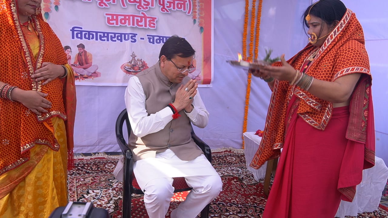 मुख्यमंत्री ने टनकपुर में च्यूड़ा पूजन समारोह में किया प्रतिभाग, महिलाओं ने किया पारंपरिक पूजन