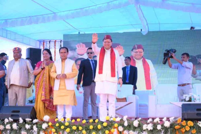 मुख्यमंत्री ने कहा कि हमने प्रदेश की देवतुल्य जनता से राज्य में समान नागरिक संहिता लागू करने का वायदा किया था। इसे राज्य में जल्द लागू किया जायेगा। राज्य के युवाओं को रोजगार के अवसर बढ़ाने की दिशा में लगातार कार्य किये जा रहे हैं। रोजगार के साथ स्वरोजगार पर भी विशेष ध्यान दिया जा रहा है। पिछले 03 सालों में 17 हजार से अधिक युवाओं को सरकारी नौकरी प्रदान की गई है। राज्य में सख्त नकल विरोधी कानून लागू होने के बाद सभी भर्ती परीक्षाएं पूर्ण पारदर्शिता के साथ सम्पन्न हुई हैं। कैबिनेट मंत्री डॉ. धन सिंह रावत ने कहा कि मुख्यमंत्री पुष्कर सिंह धामी के नेतृत्व में राज्य सरकार द्वारा जनहित में अनेक फैसले लिये गये हैं। हाल ही में कैबिनेट की बैठक में निर्णय लिए गए हैं कि गरीब महिलाओं को वर्ष 2027 तक 3-3 सिलेंडर मुफ्त दिए जाने, वन्यजीव संघर्ष में घायलों को अटल आयुष्मान योजना से मुफ्त उपचार किया जायेगा। इस अवसर पर विधायक रेनू बिष्ट, राजकुमार पोरी, जिलाध्यक्ष भाजपा सुषमा रावत, पूर्व नगर पालिकाध्यक्ष यशपाल बेनाम,  जिलाधिकारी डॉ० आशीष चौहान, वरिष्ठ पुलिस अधीक्षक लोकेश्वर सिंह, मुख्य विकास अधिकारी गिरीश गुणवंत, ब्लॉक प्रमुख महेंद्र राणा, ग्राम प्रधान किनसूर बागी दीपचंद शाह उपस्थित थे