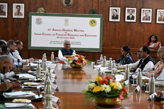 देहरादून: भारतीय वानिकी अनुसंधान एवं शिक्षा परिषद (आईसीएफआरई) की 31वीं वार्षिक आम बैठक सोमवार को आई.सी.एफ.आर.ई दृ वन अनुसंधान संस्थान, देहरादून में आयोजित की गई। इस बैठक की अध्यक्षता केंद्रीय मंत्री, पर्यावरण, वन एवं जलवायु परिवर्तन तथा आईसीएफआरई सोसायटी के अध्यक्ष भूपेंद्र यादव द्वारा की गई। केंद्रीय मंत्री श्री यादव का स्वागत कंचन देवी, महानिदेशक, आईसीएफआरई एवं आईसीएफआरई सोसायटी की सदस्य सचिव द्वारा किया गया।