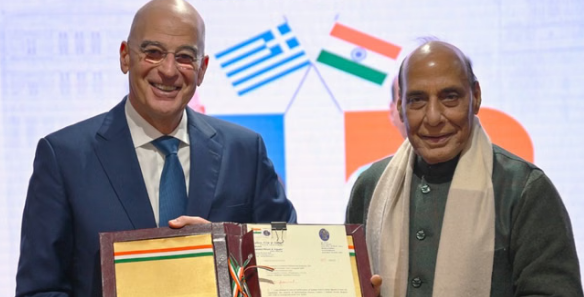 नई दिल्ली। भारत और ग्रीस ने रक्षा क्षेत्र में सहयोग बढ़ाने के लिए व्यापक समझौता किया है। सोमवार को रक्षा मंत्री राजनाथ सिंह और ग्रीस के रक्षा मंत्री निकोस डेंडियास के बीच हुई बैठक में द्विपक्षीय सैन्य सहयोग योजना-2026 और रक्षा उद्योगों के बीच तालमेल बढ़ाने के लिए एक संयुक्त घोषणा पत्र का आदान-प्रदान किया गया।