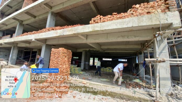देहरादून: मसूरी–देहरादून विकास प्राधिकरण (एमडीडीए) ने ऋषिकेश में अवैध निर्माण पर सख़्त कार्रवाई की है। भुवन रावत द्वारा गली नंबर 9, निर्मल बाग, ब्लॉक–बी, ऋषिकेश में किए जा रहे अवैध बहुमंजिला निर्माण को बुधवार को एमडीडीए टीम ने सील कर दिया। कार्रवाई के दौरान सहायक अभियंता शशांक सक्सेना, अवर अभियंता मनीष डिमरी, अमित भारद्वाज, सुपरवाइज़र बीरेंद्र खंडूरी, सतीश कुमार सहित पुलिस बल भी मौके पर मौजूद रहा।