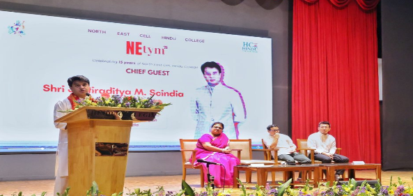 नई दिल्ली। पूर्वोत्तर क्षेत्र विकास मंत्री ज्योतिरादित्य सिंधिया ने कहा है कि पूर्वोत्तर राज्य भारत और विकासशील देशों के बीच एक सेतु का काम करते हैं और वैश्विक स्तर पर आर्थिक तथा सांस्कृतिक आदान-प्रदान को बढ़ावा देने में सक्षम हैं। उन्‍होंने दिल्ली विश्वविद्यालय के हिंदू कॉलेज में पूर्वोत्तर प्रकोष्ठ के वार्षिक सांस्कृतिक उत्सव, ने-टीम 2026 के 15वें संस्करण में यह बात कही। श्री सिंधिया ने कहा कि 93 प्रतिशत साक्षरता के साथ, पूर्वोत्तर को सभी मोर्चों पर भारत का नेतृत्व करना चाहिए। उन्होंने यह भी कहा कि नेटीम एक गतिशील मंच है। यह पूर्वोत्तर की क्षमता, ऊर्जा और सांस्कृतिक समृद्धि को दर्शाता है, जिसे भारत की ‘अष्टलक्ष्मी’ के रूप में श्रद्धापूर्वक जाना जाता है।
