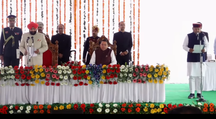 नवरात्र के दूसरे दिन शुक्रवार को लोकभवन में राज्यपाल लेफ्टिनेंट जनरल गुरमीत सिंह (सेनि.) ने सबसे पहले राजपुर विधायक खजान दास को शपथ दिलाई। इसके बाद भरत सिंह चौधरी ने संस्कृत में शपथ ली। फिर विधायक मदन कौशिक, प्रदीप बत्रा और राम सिंह केड़ा ने भी मंत्रिपद की शपथ ली। कार्यक्रम में राज्यपाल लेफ्टिनेंट जनरल रिटा. गुरमीत सिंह और मुख्यमंत्री पुष्कर सिंह धामी मौजूद रहे।