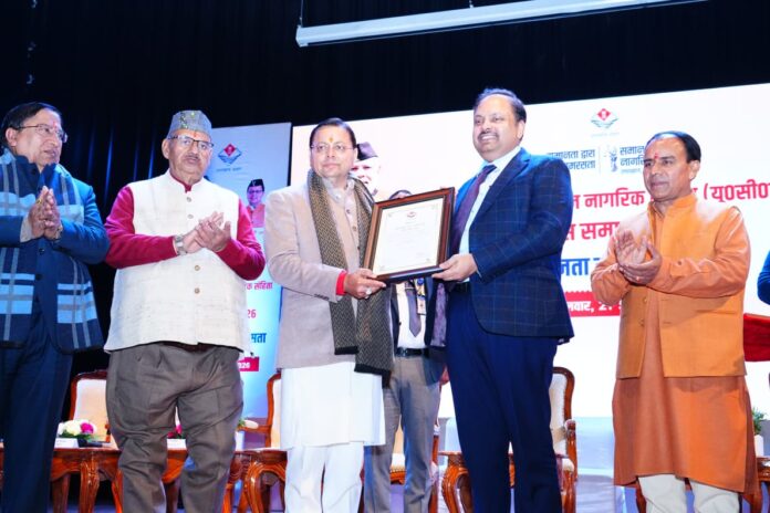 देहरादून। मुख्यमंत्री पुष्कर सिंह धामी ने मंगलवार को हिमालयन कल्चरल सेंटर गढ़ी कैंट में आयोजित प्रथम “समान नागरिक संहिता दिवस” को संबोधित किया। इस मौके पर उन्होंने समान नागरिक संहिता को तैयार करने वाले कमेटी के सदस्यों, कुशल क्रियान्वयन करने वाले प्रशासनिक अधिकारियों और पंजीकरण में योगदान देने वाले वीएलसी को भी सम्मानित किया। कार्यक्रम के दौरान मुख्यमंत्री ने यूसीसी पर आधारित फोटो प्रदर्शनी का अवलोकन भी किया। समारोह को संबोधित करते हुए मुख्यमंत्री पुष्कर सिंह धामी ने कहा कि आज का दिन उत्तराखंड राज्य के इतिहास में स्वर्णिम अध्याय के रूप में अंकित रहेगा, इसी दिन राज्य में समान नागरिक संहिता लागू हुई है, जिससे समाज में सामाजिक न्याय, समानता और संवैधानिक मूल्यों की स्थापना सुनिश्चित हो सकी। उन्होंने कहा कि सनातन संस्कृति और परंपरा सदैव समरसता और समानता की संवाहक रही है। भगवान श्रीकृष्ण ने भी गीता में “समोहम सर्वभूतेषु न मे द्वेष्योस्ति न प्रियः” का उपदेश दिया है, जिसका अर्थ है कि मैं सभी प्राणियों के प्रति समान भाव रखता हूँ, न किसी का शत्रु हूँ और न ही किसी के प्रति पक्षपात करता हूँ। सनातन संस्कृति की यही महानता है, जिसने सदियों से दुनिया को समानता, न्याय और मानवता का मार्ग दिखाया है।