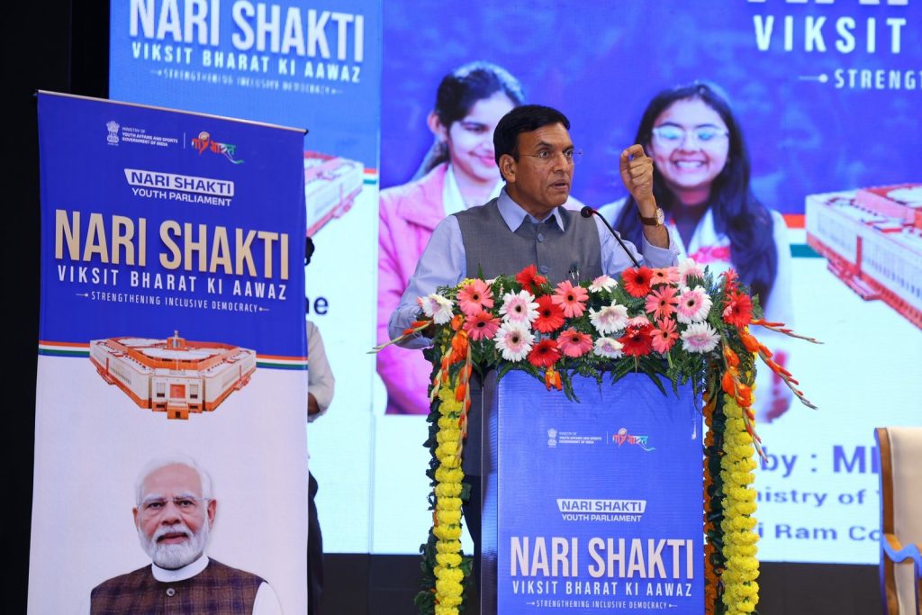नई दिल्ली। युवा कार्यक्रम और खेल मंत्रालय ने आज मेरा युवा भारत मंच के माध्यम से राष्ट्रव्यापी नारी शक्ति युवा संसद का आयोजन किया। यह पहल 17 क्षेत्रों में एक साथ आयोजित की गई। इसमें 7 हजार से अधिक युवतियों ने संगठित लोकतांत्रिक भागीदारी और युवा नेतृत्व वाले नीतिगत संवाद के लिए भाग लिया। इसने विभिन्न शैक्षणिक, सामाजिक और क्षेत्रीय पृष्ठभूमि की युवतियों को एक साथ लाकर देश की लोकतांत्रिक और विकास यात्रा के लिए विश्वसनीय और संरचित मंच का निर्माण किया।