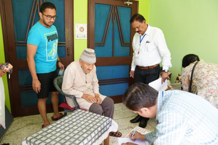 देहरादून। मुख्य निर्वाचन अधिकारी डॉ.बी.वी.आर.सी. पुरुषोत्तम की उपस्थिति में होम वोटिंग की सुविधा के तहत् शनिवार को जनपद देहरादून में 85़ मतदाताओं को मतदान कराया गया। इसके साथ ही, मुख्य निर्वाचन अधिकारी ने मतदान कर्मियों द्वारा पोस्टल बैलेट के माध्यम से मतदान के लिए डाकरा देहरादून में संस्कृति विभाग के प्रेक्षागृह में लगाए गए कैंप का भी निरीक्षण किया। इस अवसर पर अपर मुख्य निर्वाचन अधिकारी विजय कुमार जोगदंडे, जिलाधिकारी देहरादून सोनिका एवं सीडीओ देहरादून झरना कामठान भी उपस्थित थी।